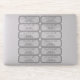 12 individually customizable laser cut, transparent address labels on clear self-adhesive stickers. These are slightly larger than return address labels so that they're sized correctly for addressing letters.
