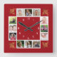 12 Photo Collage Create Your Own Gold Red Square Wall Clock