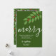 12 Photo Collage - Merry Script - Green Botanical Holiday Card