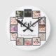12 Photo Collage Personalized Black White Round Clock