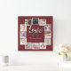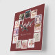 12 Photo Collage Personalized Burgundy Square Wall Clock