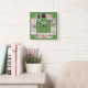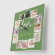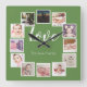 12 Photo Collage Personalized Green Square Wall Clock