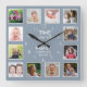 12 Photo Collage Time With Family Quote Dusty Blue Square Wall Clock