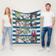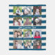 12 Photo Collage with Preppy Blue Ivory Stripes Fleece Blanket