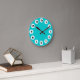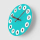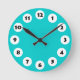 12 Spots - Black with White on Turquoise Round Clock