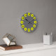 A stylish clock face with the numbers placed inside circular colour spots in each hour position. Also available in other colours.
