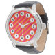 A stylish clock face with the numbers placed inside circular colour spots in each hour position. Also available in other colours.
