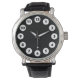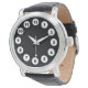 A stylish clock face with the numbers placed inside circular colour spots in each hour position. Also available in other colours.