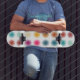 This stunning Sunburst Gradient Skateboard is an exquisite product that features a captivating graphic design showcasing 12 suns arranged in a mesmerizing colour gradient. With its vibrant hues seamlessly blending into one another, this Skateboard brings a burst of warmth and energy.