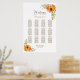 This yellow and pink floral seating chart will help your guests find their table. It is suitable for a wedding with 12 tables and up to 120 guests.