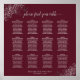 Ce tableau de 12 places mariage est à la fois simple et élégant. Il comprend l'assignation de table pour 120 personnes avec 10 places par table. Le design comporte du texte gris sur un arrière - plan bordeaux ou marron avec un titre de calligraphie de script dentelé. Les coins sont décorés d'un faux fil argenté frileux avec des boucles et des tourbillons. Une façon élégante, chic et sophistiquée d'aider vos clients à trouver leur place à la réception.