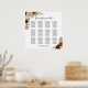 Ce magnifique tableau de 12 tables pour mariages vous permettra de trouver facilement votre place à la réception de votre mariage. Il présente un design floral rustique peint à la main, avec des roses dans les tons de rouille orange, pêche au corail et nombre brûlé. Les fleurs sont entourées de sprigs de feuilles de jardin d'automne et de feuillage d'automne, avec un élégant titre de calligraphie script et espace pour vos noms et la date mariage ci-dessous. Peut accueillir 120 personnes avec 10 places par table.