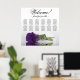 Ce tableau de places mariage comporte 12 tables et présente un design romantique, élégant et magnifique. Un arrangement floral moderne est accentué par un seul rose royal violet à longue tige, allongé sur son côté, se reflétant dans un bassin d'eau. Le titre, "Bienvenue! s'il vous plaît trouver votre table," est écrit en calligraphie de script sophistiquée, tandis que les noms du couple et la date du mariage sont affichés en bas. Avec des tables de 120 places et 10 places par table, ce tableau fournit de nombreux aménagements pour que vos invités puissent profiter de la fête.