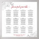 Ce tableau de 12 places mariage est à la fois simple et élégant. Il comprend l'assignation de table pour 120 personnes avec 10 places par table. Le design comporte du texte gris foncé et rouge sur un arrière - plan blanc avec un titre de calligraphie de script lacy. Les coins sont décorés d'un faux fil argenté frileux avec des boucles et des tourbillons. Une façon élégante, chic et sophistiquée d'aider vos clients à trouver leur place à la réception.