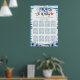 12 Tables Wedding Seating Chart Poster Templates - Elegant Script Watercolor Floral with Blue Brush Wave Stripes.