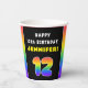 This cheerful and joyful birthday-themed paper cup design features a large number “12“ having a multicolored rainbow spectrum inspired gradient pattern, along with the message “HAPPY 12th BIRTHDAY,”, and an editable recipient name. Birthday themed paper cups like this might be a fun way to celebrate somebody’s 12th birthday. [~Z0000639]