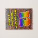 This vibrant and fun urban graffiti and street art inspired birthday jigsaw puzzle design features a large number “12” having a colourful rainbow spectrum gradient inspired pattern. It also features the message “Happy 12th Birthday,”, and a personalized name. The background has a brick wall pattern. A vibrant, personalized birthday puzzle like this might be a fun way to send a birthday greeting message to somebody who is celebrating their twelfth birthday. [~Z0000545]