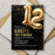 12th Birthday Gold Black Invitation