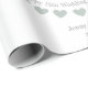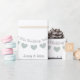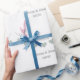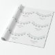 The wrapping paper can be customized to include the names of the husband and wife, as well as their wedding date. The bunting text shown can also be changed.