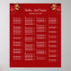 This “130 Red And Gold Floral Wedding Seating Chart” is alphabetical and will fit 130 guests. Your guests find their places, and they can enjoy your special celebration.