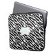 The sleeve is made of nice feeling material and seems very durable. I'm not sure how easy it'll be to clean, but the construction seems sound and the fabric is quick thick. I also like the double zipper. The printing is lovely and appears durable. The white on black contrast is nice, and the design very elegant.