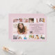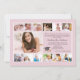 A graduation announcement collage to celebrate the years and times of her life. Thirteen photos in all. The reverse side holds a cameo window for a special "someone" or a family photo. There is lots of room on the reverse side for added information or party details. If you require help in setting up your photos, please contact us for assistance. The card is easy to customize with your wording, font, font colour and choice of six paper types.
