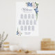 Aidez vos invités à trouver leur table avec ce tableau de sièges à fleurs de rose bleue et blanche mariage. Il convient à une mariage de 13 tables et 130 couverts.