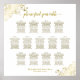 Ce beau tableau de 13 places mariage comprend des assignations de table pour 130 personnes avec 10 places par table. Le design comporte du texte en or sur un arrière - plan blanc avec un titre de calligraphie de script en dentelle. Les coins sont décorés d'un faux fil frileux avec des boucles et des tourbillons qui le rendent à la fois simple et élégant. Une façon élégante, chic et sophistiquée d'aider vos clients à trouver leur place à la réception.