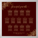 Ce beau tableau de 13 places mariage comprend des assignations de table pour 130 personnes avec 10 places par table. Le design présente du texte en or sur un arrière - plan de couleur chocolat ou auburn avec un titre de calligraphie en dentelle. Les coins sont décorés d'un faux fil frileux avec des boucles et des tourbillons qui le rendent à la fois simple et élégant. Une façon élégante, chic et sophistiquée d'aider vos clients à trouver leur place à la réception.