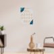 Le tableau de sièges mariage comporte 13 tables. Dans les coins, vers le haut à gauche et vers le bas à droite, il y a des géolocalisations bleues. L'arrière - plan est en marbre blanc. Les noms de la mariée et du marié sont écrits dans un élégant script calligraphique. Tout le texte a une couleur dorée. Le geode bleu est une photo de Robert Ramsay de Pixabay et il est gratuit pour un usage commercial. `.