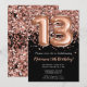 13e anniversaire Invitation Black Rose Gold Parties scintillant Elégante or noir et rose 13e anniversaire invitation pour une fille de 13 ans avec écriture de script moderne et des ballons de papier amusant.
