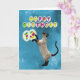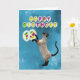 A playful siamese cat chasing balloons. A great way for a cat lover to send a birthday card.