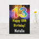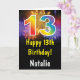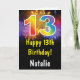 13th Birthday Colorful Rainbow Fireworks Card with personalized name. For further customization, please click the "Customize it" button and use our design tool to modify this template.