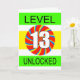 13th birthday card for a video gamer. Any computer gamer will love this card. With the slogan Level 13 Unlocked, this is sure to get a big grin from anyone who loves playing computer games.
