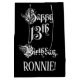 This luxurious and formal birthday gift bag design features the message “Happy 13th Birthday,” in opulent script style text, on a black coloured background. It also has a personalized recipient name. A giftbag like this might be used when wrapping gifts being given to somebody in celebration of their 13th birthday. [~Z0000557]