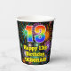 This fun and cheerful birthday paper cup design features a large number “13” with a rainbow spectrum gradient inspired pattern, along with the message “Happy 13th Birthday,”, and a personalized name. The background features a vibrant and colourful pattern inspired by the look of bursting celebratory fireworks. Vibrant, colourful paper cups like this might be fun to have at a birthday celebration being held in celebration of somebody’s 13th birthday. [~Z0000539]