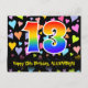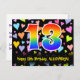 13th Birthday: Fun Hearts Pattern, Rainbow 13 Postcard