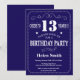 13th Birthday Invitation Navy Blue and White