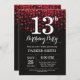 13th Birthday Invitation with Red String Lights with Red Glitter Background. Red Birthday. Kids Birthday. Boy or Girl Bday Invite. 13th 15th 16th 18th 20th 21st 30th 40th 50th 60th 70th 80th 90th 100th, Any age. For further customization, please click the "Customize it" button and use our design tool to modify this template.