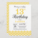 13th Birthday Invitation Yellow Chevron