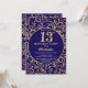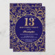 13th Birthday Navy Blue and Gold Floral Pattern Invitation