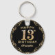 13th Birthday Party Black and Gold Glitter Frame Keychain. For further customization, please click the "Customize it" button and use our design tool to modify this template.