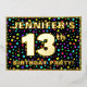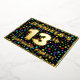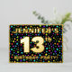 The front of this eye-catching thirteenth birthday celebration foil invitation card design features an editable name, a large number “13th”, the message “BIRTHDAY PARTY!”, and a border. The background of the front features a fun, multicolored starfield pattern. The back features personalized details about the event, such as the date, time, location, and any other relevant information. Customized invitations like these might be a fun way to invite attendees to a birthday gathering being held in celebration of somebody’s 13th birthday. [~Z0000600]