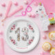 I ordered this for my baby’s first bday party. Came on time and looked so cute! Quality is pretty good too. Everyone saw the plate and didn’t want to use it! Happy with this purchase overall! Great. Exactly as described.