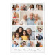 Créez votre propre collection photo de 14 photos pour Noël, Anniversaires, Mariages, Anniversaires, Diplômes, Fête des pères, Fête des Mères ou toute autre occasion spéciale, avec notre outil de design facile à utiliser. Ajoutez vos photos préférées d'amis, de famille, de vacances, de loisirs et d'animaux de compagnie et vous aurez un magnifique collage photo unique en son genre. Notre collage photo personnalisé est parfait pour la décoration maison, le don de cadeaux ou même des fins de promotion d'affaires.
