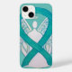 Le coque iphone d'ange gardien présente l'art d'une peinture d'ange à ruban vert turquoise de conscience. Le ruban vert turquoise est le support de l'agoraphobie, des troubles anxieux, des troubles identitaires dissociatifs, des allergies alimentaires, du syndrome X fragile, du syndrome de Myasthénie Gravis, du trouble obsessionnel-compulsif, du cancer de l'ovaire, du cancer du col utérin, des troubles de la panique ou du stress (SSPT), du syndrome ovarien polykystique, des reins polykystiques, des maladies sexuelles, abus sexuels, Agression, toxicomanie, maladie de la bataille et syndrome de la tourette (TS). Le coque iphone d'art turquoise de l'ange de sensibilisation verte peut être customisé de messages personnalisés pour faire des cas de cause pour les collecteurs de fonds, des cadeaux de sensibilisation, ou d'autres événements ou occasions spéciales.