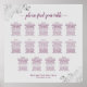 This beautiful wedding seating chart includes table assignments for 140 guests at 14 tables. The simple yet elegant design features magenta plum or cassis purple text on a gray background with a lacy script calligraphy title. The corners are decorated with a silver frilly faux foil filigree with curls and swirls. Stylish, chic and sophisticated way to help your guests find their seats at your reception.