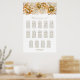Help your guests find their table with this elegant orange floral seating chart. It is suitable for a wedding with 14 tables and 140 guests.