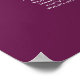 This beautiful wedding seating chart includes table assignments for 140 guests at 14 tables. The simple yet elegant design features light gray text on a magenta plum or cassis purple background with a lacy script calligraphy title. The corners are decorated with a silver frilly faux foil filigree with curls and swirls. Stylish, chic and sophisticated way to help your guests find their seats at your reception.