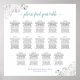 Ce magnifique tableau de sièges mariages comprend des assignations de table pour 140 personnes à 14 tables. Le design simple mais élégant présente du gris foncé et du texte turquoise ou turquoise sur un arrière - plan blanc avec un titre de calligraphie de script dentelé. Les coins sont décorés d'une fausse feuille d'argent frileux avec des boucles et des tourbillons. Une façon élégante, chic et sophistiquée d'aider vos clients à trouver leur place à la réception.